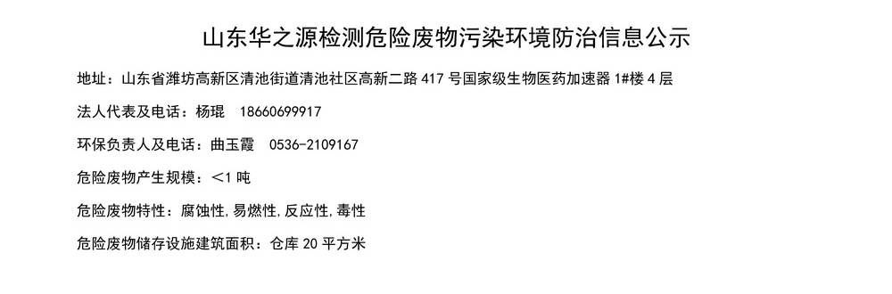 山東華之源檢測危險廢物污染環境防治信息公示